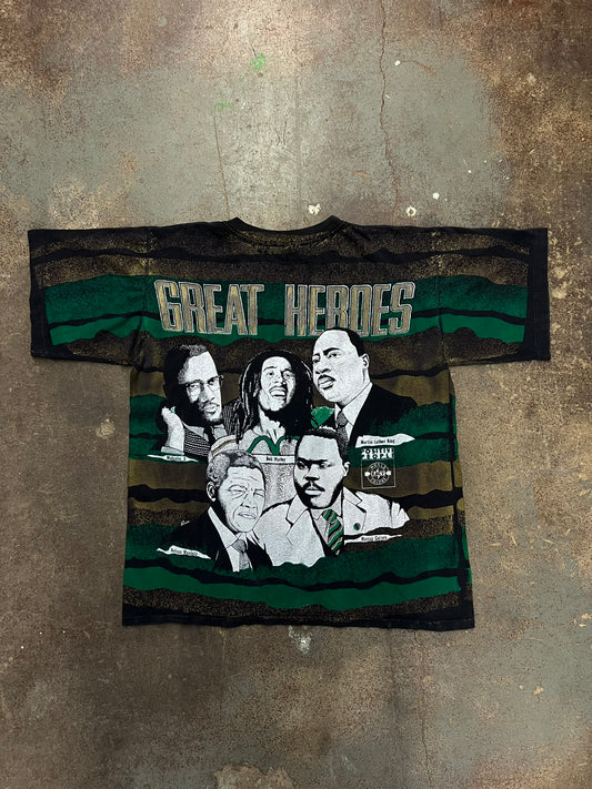 1990's Great Heroes Black History All Over Print Graphic T-Shirt - XL