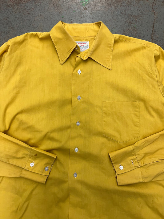 1970's Rage Permanent Press Yellow Button Up Shirt - L