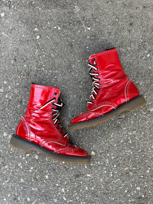 1980's/1990's Doc Martens 5729 Red Patent Leather Wingtip Derby Boots - Women's 7.5
