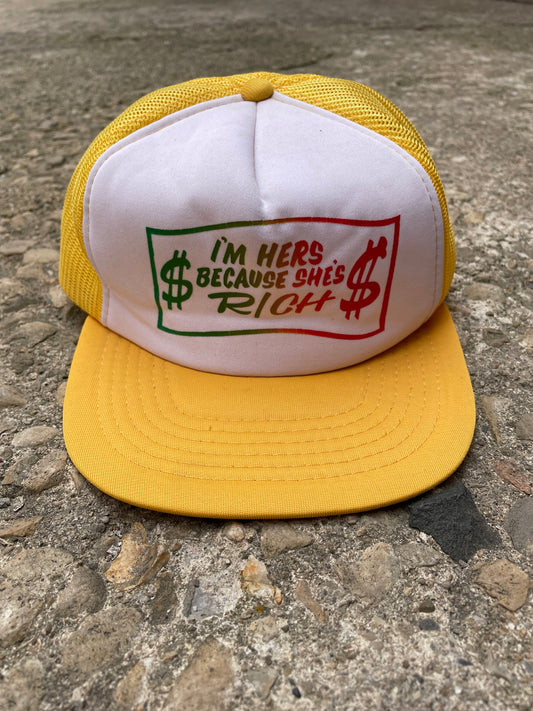 1980's 'I'm Hers Because She's Rich' Funny Trucker Hat