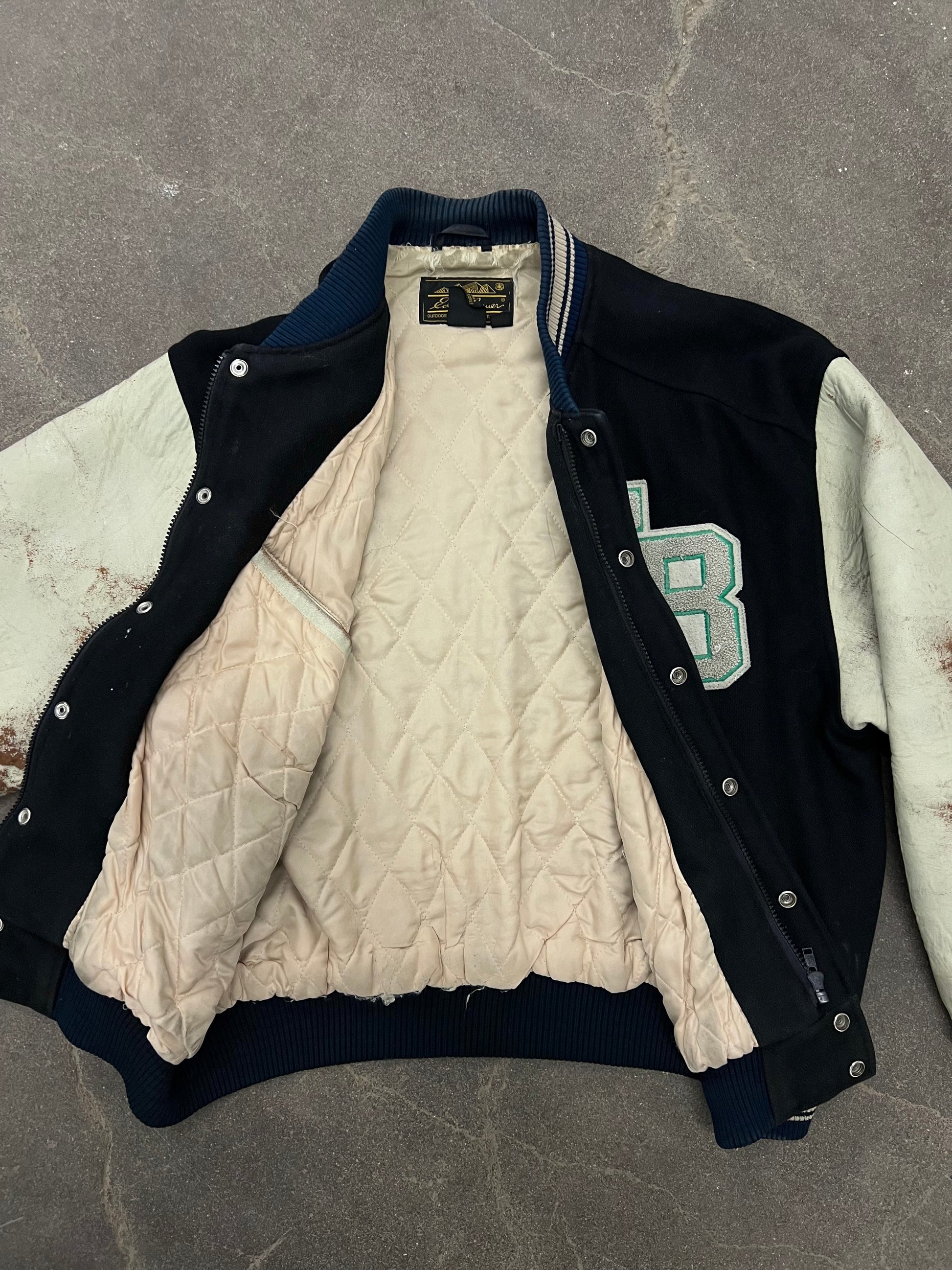 1980's/1990's Eddie Bauer Wool & Leather Letterman Varsity Jacket - XL