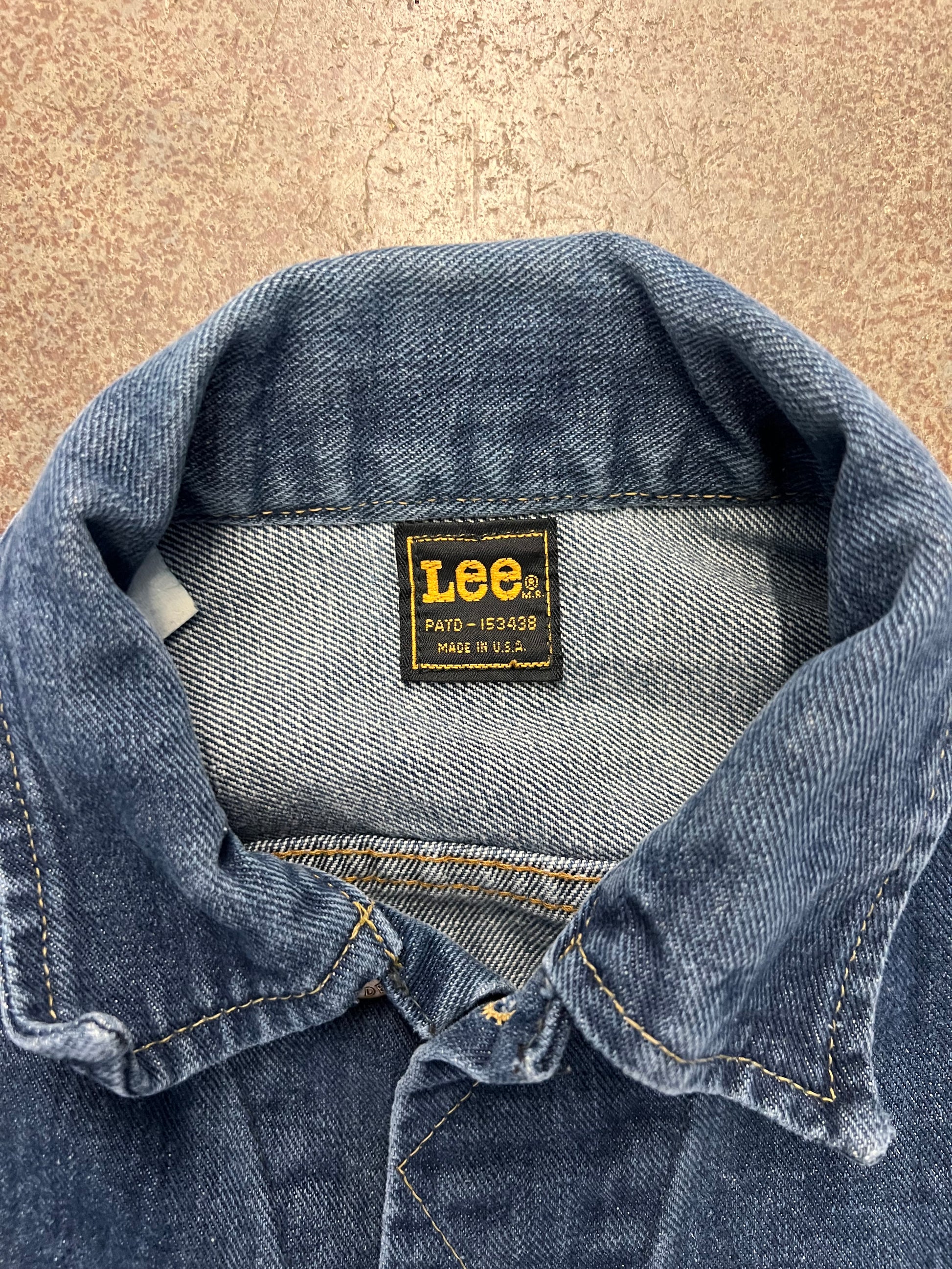 Lee 101-J denim jacket from the 1980's, made in the USA. Great wash denim throughout. Size tag is faded, fits size S best, has a cropped fit. 8.5/10 condition, great condition. 18.5x22