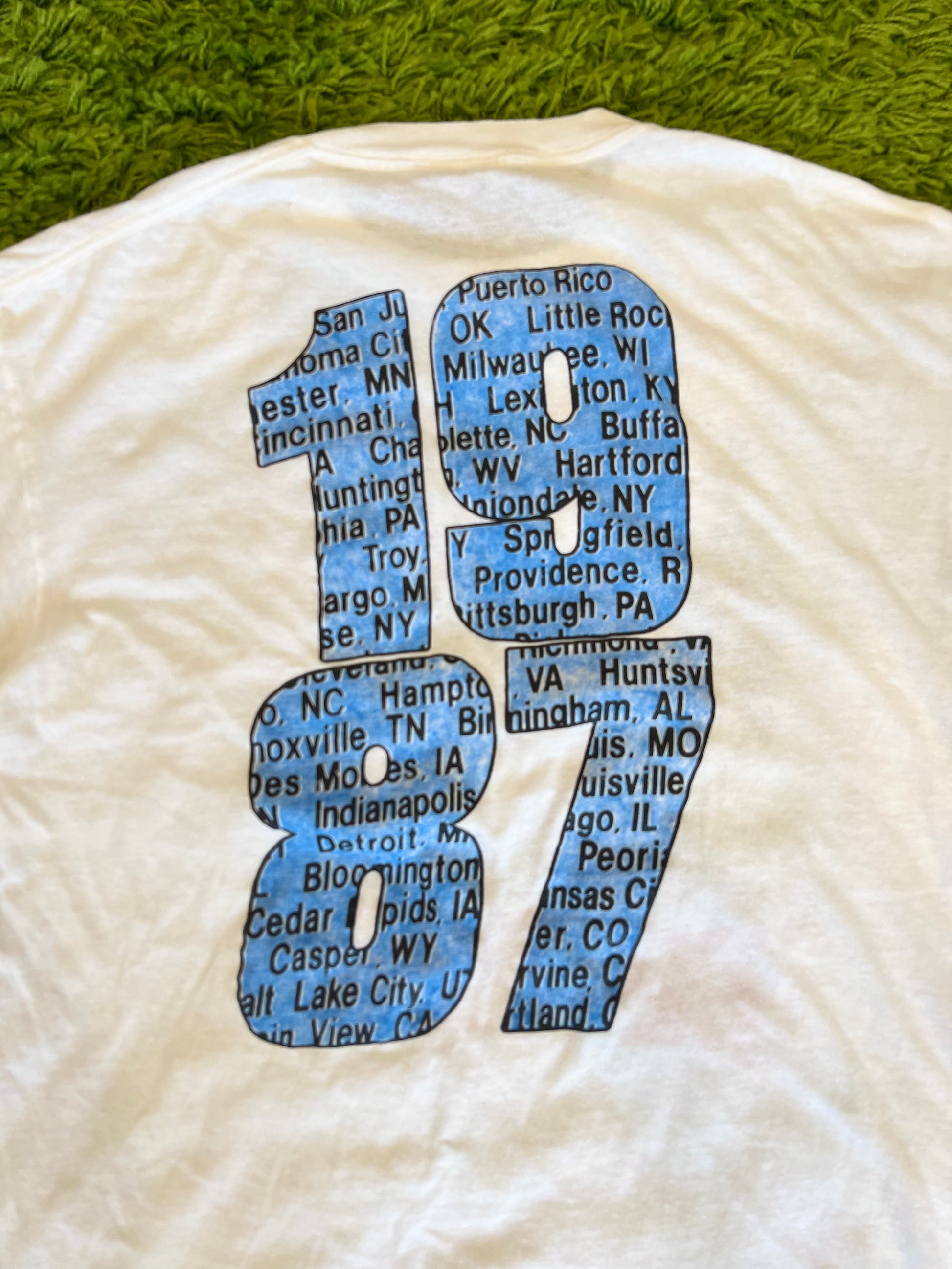 Bon Jovi 'The Tour' double sided graphic band t-shirt from 1987, shirt made by the brand Star Prints, made in the USA. Big graphics on both the front and back of the shirt. Tagged size XL, fits more like size L. 8/10 condition, small hole in the back of the shirt. 22x28